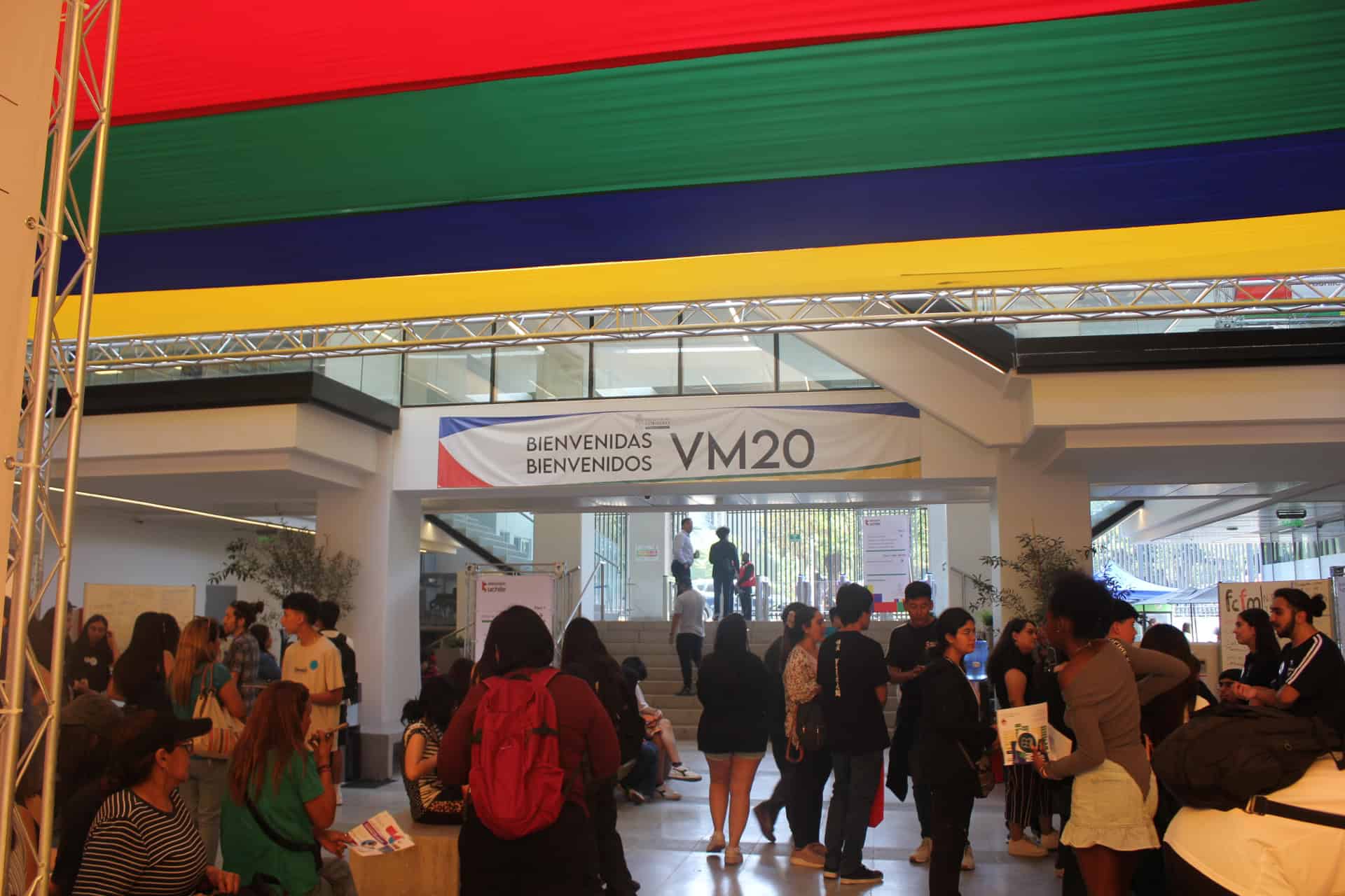 Desde el stand de la FEN en VM20, cada 30 minutos se realizaron tours guiados hacia la Facultad, permitiendo a las y los postulantes conocer en primera persona —y acompañados por estudiantes— distintos espacios como el campus deportivo, el Aula Magna, la biblioteca y el laboratorio de finanzas.