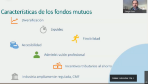 Conocer la situación actual de la industria de los fondos mutuos, consideraciones importantes para ejecutar acciones o tomar decisiones desde un punto de vista financiero, fueron parte de los puntos abarcados en la instancia aprovechada por docentes, estudiante y parte de la comunidad.
