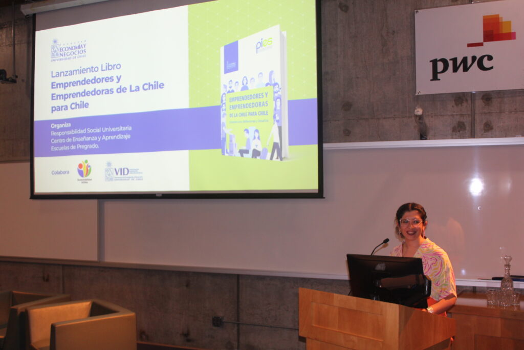 La encargada de guiar esta actividad fue la Jefa de RSU de la FEN, Camila Fara Belmar, quien dijo que “el lanzamiento de este libro es muy significativo para nuestra unidad, porque representa una sistematización de grandes experiencias, de egresados/as de toda la Universidad que optaron por este camino profesional, generando soluciones con impacto a partir de sus emprendimientos. También, relata los inicios del PIES y su curso interdisciplinario que aún vigente, busca ser un semillero de nuevas soluciones a los dolores actuales. Es un texto que busca inspirar a otros/as y que a la vez nos da el puntapié inicial para abrir caminos de trabajo conjunto y articulado entre distintas disciplinas y generar transformaciones en nuestro quehacer universitario, a partir de innovaciones y emprendimientos sostenibles que generen valor a la sociedad a nivel económico, social y ambiental”.