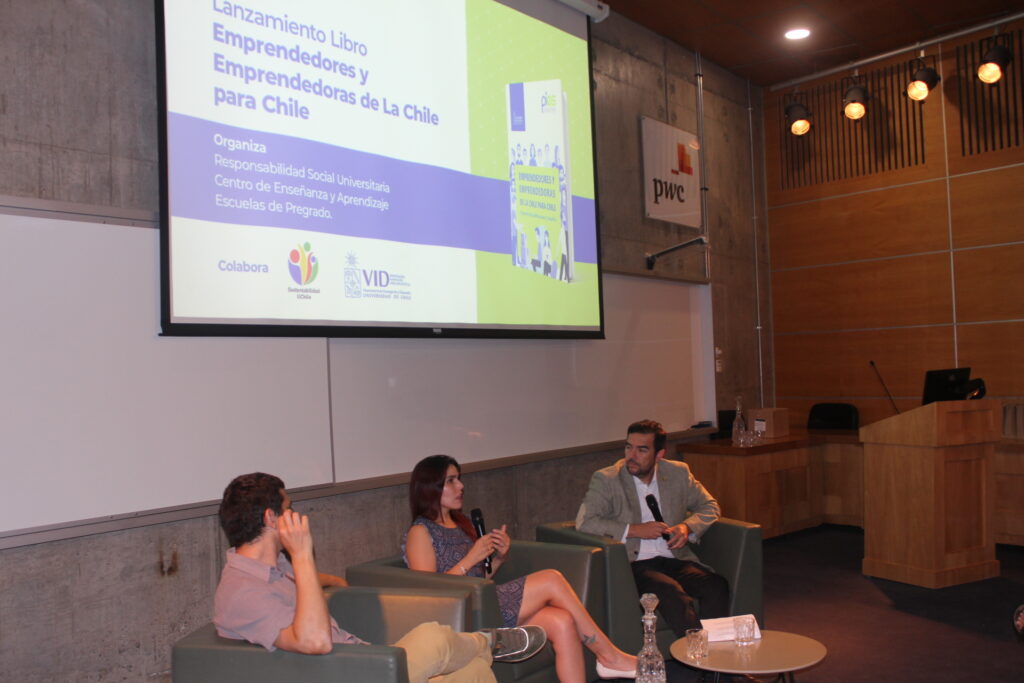 La actividad consideró un panel de conversación en el que dos de los protagonistas de este libro, contaron parte de sus experiencias al iniciar el recorrido de la innovación y el emprendimiento. Los participantes fueron: Fabián Martínez, egresado de Ingeniería Comercial de la FEN, creador de Puntaje Nacional, preuniversitario gratuito, y de Genomawork, plataforma de reclutamiento y selección de personas; y Alejandra Allendes, ingeniera agrónoma UCH, fundadora y CEO de Quelp, startup, que desarrolla soluciones sustentables a base de algas, en formato de productos alimenticios y biomateriales 100% compostables.