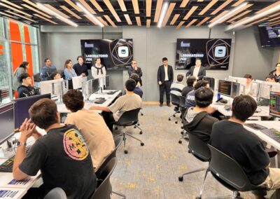 La jornada contó además con la presencia del Secretario de Estudios, César Ortega, y del Vicedecano de la Facultad, profesor Enrique Manzur, quien destacó la relevancia de la iniciativa para el proceso formativo: “Esta es una excelente oportunidad para desarrollar competencias clave, aprovechar las herramientas que ofrece la Facultad y acercarse de manera concreta al ejercicio profesional”. El evento también contó con monitores permanentes del laboratorio, disponibles para brindar apoyo técnico a los estudiantes a lo largo de todo el desafío.