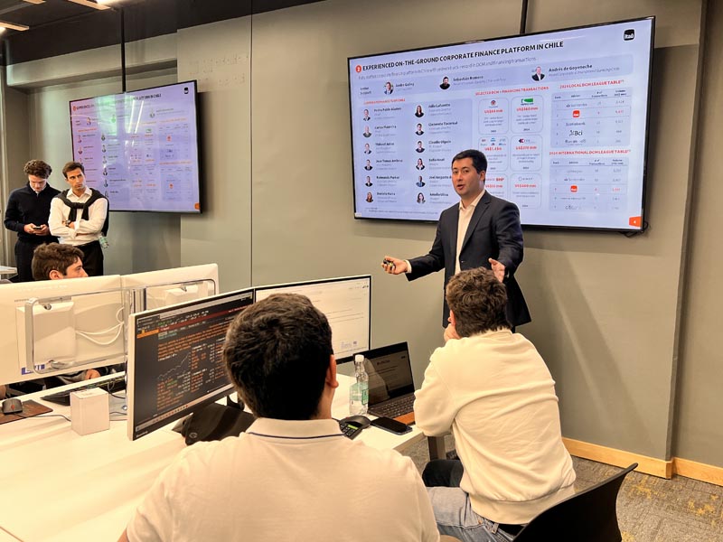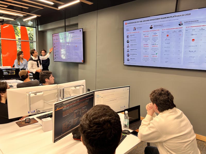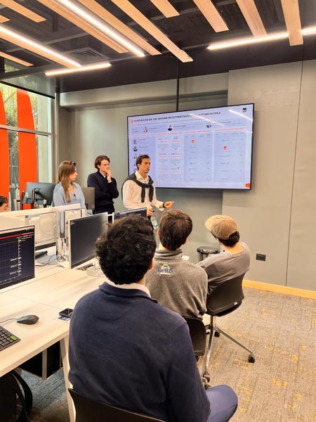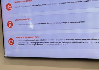 El pasado martes 22 de abril se celebró en la Facultad de Economía y Negocios (FEN) de la Universidad de Chile el lanzamiento del Challenge de Valorización de Empresas, una iniciativa del equipo de Investment Banking y Corporate Finance de Itaú que invita a estudiantes de pregrado a poner en práctica sus conocimientos financieros mediante el desarrollo de un caso real de valorización, aplicando las terminales Bloomberg para el análisis financiero.