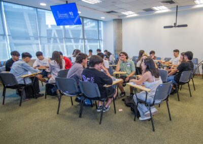 La jornada continuó con una sede de actividades informativas, música y conversación, donde la generación 2025 comenzó a conocerse.