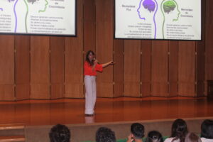 “Estamos muy contentos con su participación. Es un puntapié inicial para el trabajo que viene durante el primer semestre. Nosotros queremos que ustedes valoren, analicen e identifiquen sus habilidades, qué cosas tienen que potenciar y que empiecen el primer semestre con el pie derecho, así que voy a recordarles cuáles son los principales objetivos, hay un objetivo general pero hay unos 4 objetivos específicos que nosotros nos propusimos como Centro de Enseñanza y Aprendizaje y en conjunto con los profesores de matemáticas para desarrollar en este período, en esta semana, primero, potenciar los conocimientos matemáticos y las habilidades básicas para un desempeño, ojalá exitoso. Exitoso no quiere decir que no tengamos algunas dificultades y la idea es poder afrontar eso con muchas ganas, con mucha disciplina y sin tirarnos al suelo al primer conflicto o dificultad que surja”, fueron las palabras de la Directora del CEA, Alejandra Sánchez, en su saludo en la ceremonia de cierre de este proceso del Introductorio Matemáticas.