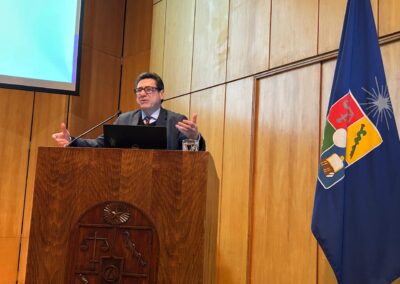 En su visita a la FEN Uchile Aghion centró su exposición en la importancia de la innovación, la competencia y la inteligencia artificial para el crecimiento económico. Además abordó temas clave como el rol de la competencia en el desarrollo de nuevos mercados, los desafíos de la inteligencia artificial y la necesidad de adaptar las políticas económicas para fomentar la innovación.