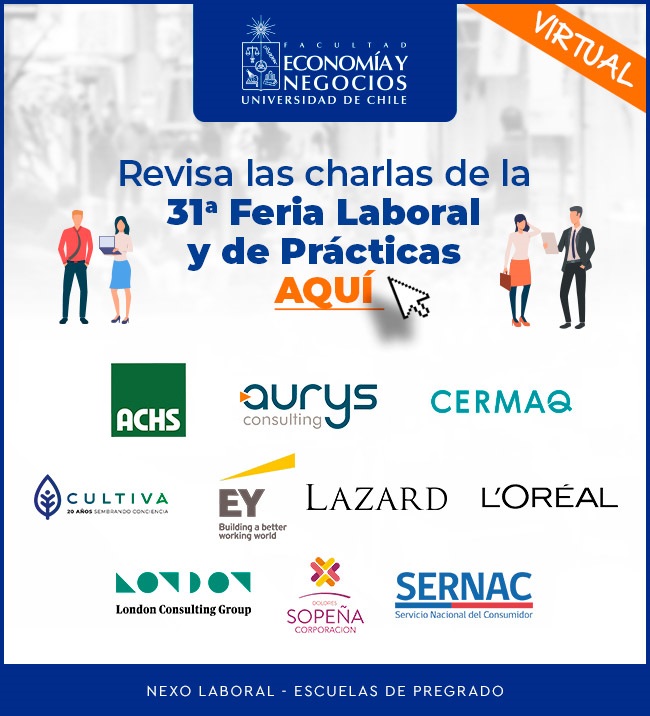 Del 01 al 04 de junio se desarrollará la 31° versión de la Feria Laboral y de Prácticas, correspondiente al semestre de otoño 2021. El evento se realizará por tercera vez consecutiva en formato virtual, siendo una plataforma accesible para que egresados/as y estudiantes se vinculen directamente con diversas organizaciones.