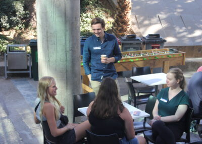 Y con el objetivo de que las y los internacionales conocieran más sobre su nueva casa de estudios, estudiantes que forman parte del programa FEN Buddies, les realizaron un tour guiado por las dependencias de la facultad, para posteriormente unirse en conjunto a las actividades de  la Bienvenida Mechona 2023 de estudiantes que ingresaron a las carreras Contador Auditor, Ingeniería Comercial, e Ing. en Información y Control de Gestión.